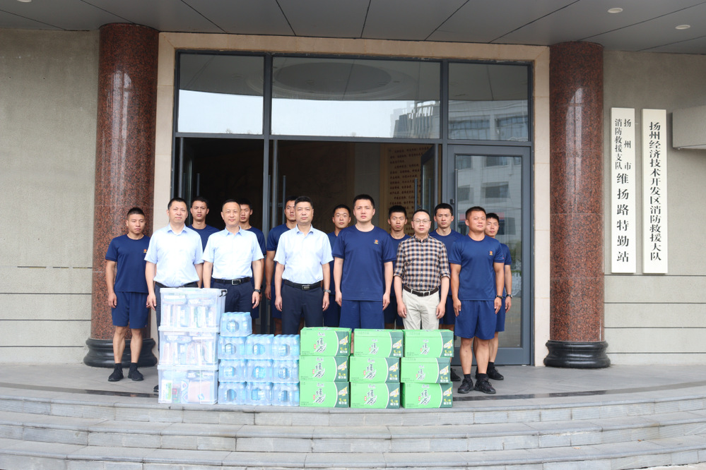 7月21日上午,潔源光伏公司負責人一行赴揚州市消防救援支隊走訪慰問,為炎熱酷暑中堅守在消防救援一線的消防指戰(zhàn)員送去清涼解暑慰問品。