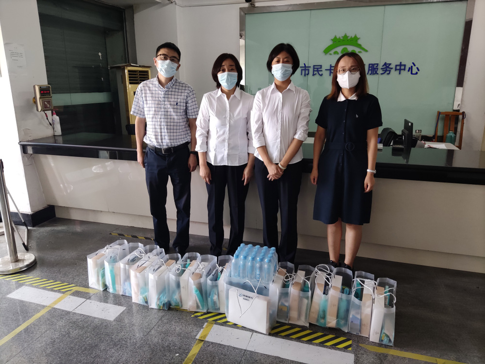 烈日炎炎,驕陽似火,7月22日下午,市民卡公司副總經(jīng)理陳海亮帶隊(duì)赴江都營業(yè)廳進(jìn)行高溫慰問,為一線服務(wù)人員送去礦泉水、風(fēng)油精等防暑用品,并檢查了夏季高溫安全和防疫措施落實(shí)情況。