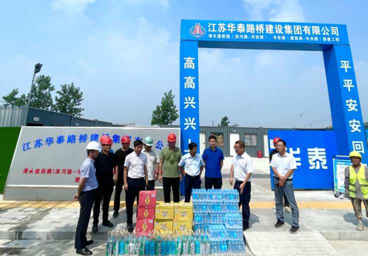 連日來(lái),揚(yáng)州持續(xù)高溫、酷暑難耐。名城公司負(fù)責(zé)人帶隊(duì)到灣頭項(xiàng)目部開(kāi)展慰問(wèn)活動(dòng),向堅(jiān)守崗位、奮戰(zhàn)一線的同志們致以崇高敬意,并送去消暑慰問(wèn)品。
