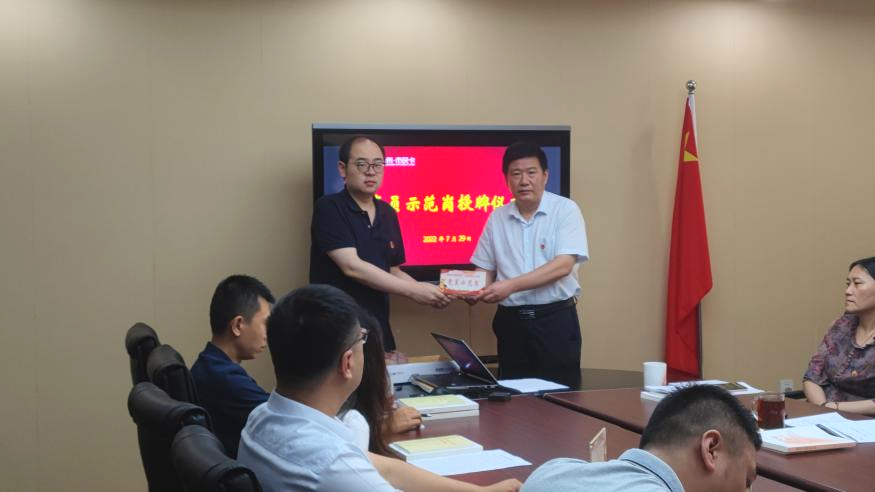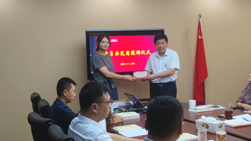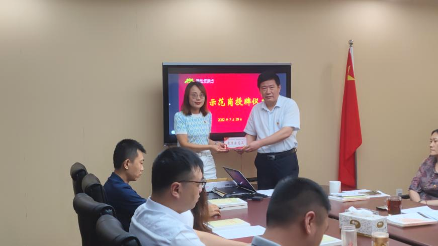 會上,黨支部舉行了黨員示范崗授牌儀式,公司黨支部書記為黨員示范崗授牌,號召黨員學習他們不怕吃苦、甘于奉獻、攻堅克難、勇于擔當?shù)木?,形成學習先進、爭當先進的良好氛圍。