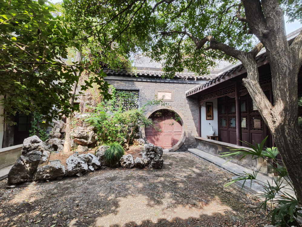青磚黛瓦烙印著古樸靜謐的歲月色彩,從院內(nèi)蔓出的綠葉,郁郁蔥蔥,在陽光的照射下透射出生機(jī)勃勃,勢與西側(cè)燈火霓虹、車水馬龍的文昌百匯街區(qū)相互交融,繁華中的古樸,喧鬧中的幽靜,我們在古與今之間來回穿梭。