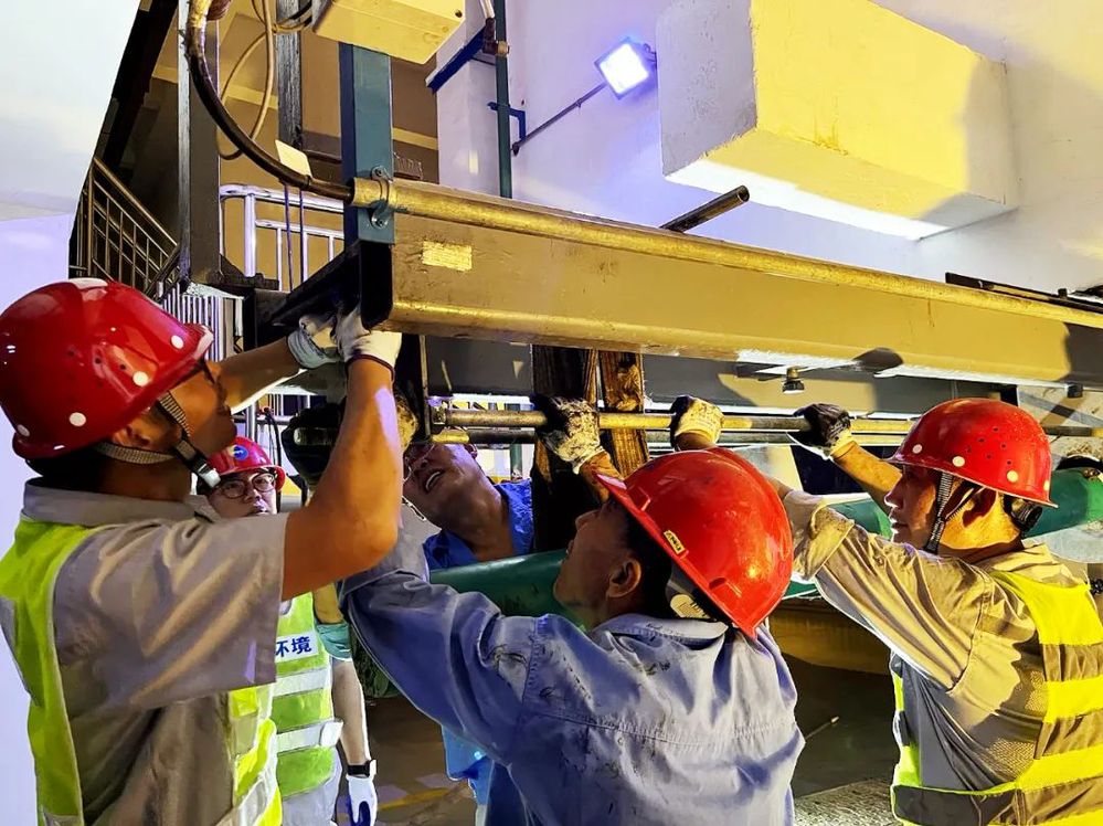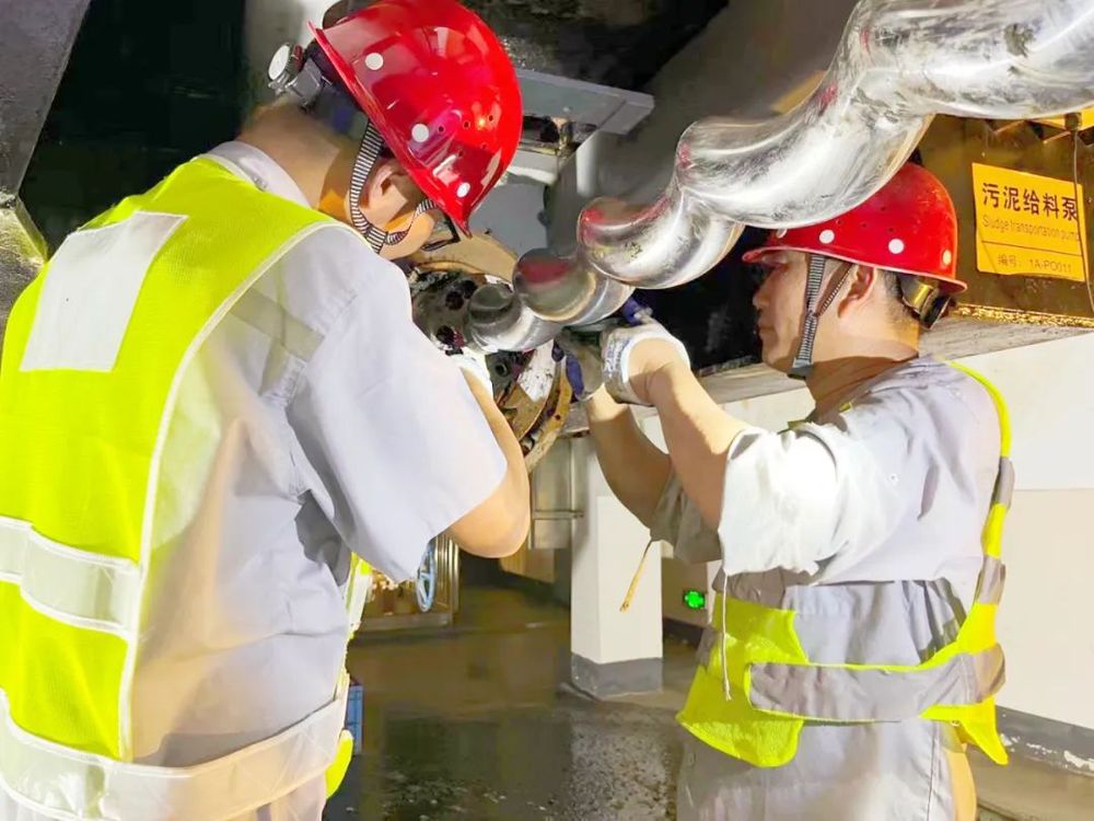 “蒸汽系統(tǒng)關(guān)閉,主體設(shè)備污泥走空,我們一會到……”8月22日晚19點18分,公司運營維護部接到當班生產(chǎn)人員報修電話,經(jīng)初步判斷是污泥傳輸系統(tǒng)鬧起了“脾氣”。19點52分,公司運營維護部全體人員到達現(xiàn)場,經(jīng)現(xiàn)場確認發(fā)現(xiàn)是污泥傳輸泵定子發(fā)生損壞。找到“癥結(jié)”后,他們迅速戴上安全帽,穿上安全背心,這一瞬間,他們化身為夜間的“逆行者”,與時間展開了一場賽跑,應(yīng)急搶修行動正式拉開帷幕。