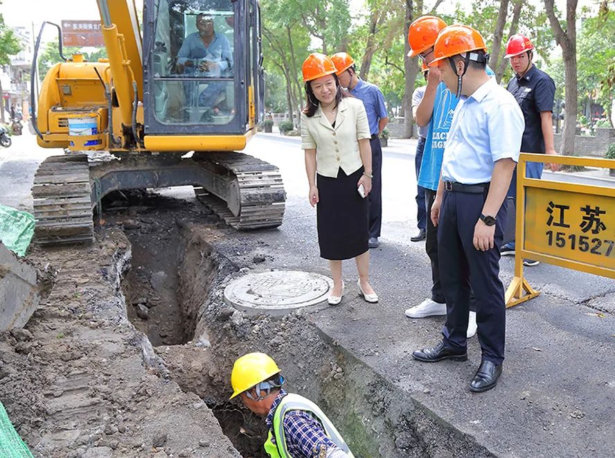 潘涵一行首先查看了鹽阜東路老舊燃?xì)夤艿栏脑焓┕がF(xiàn)場。潘涵詳細(xì)了解了老舊管網(wǎng)改造工程建設(shè)情況,檢查了現(xiàn)場安全管控措施、人員安全防護(hù)和安全警示標(biāo)志等重點(diǎn)工作落實(shí)情況。潘涵指出,老舊燃?xì)夤艿栏脑焓且豁?xiàng)惠及千家萬戶的民生工程,要按照管道施工相關(guān)要求規(guī)范作業(yè),利用GPS做好管道精準(zhǔn)定位,要加強(qiáng)施工現(xiàn)場管理,做好安全防護(hù)、安全宣傳等工作,要確保正常交通秩序,增加現(xiàn)場安全疏導(dǎo)人員,保證行車、行人的安全。