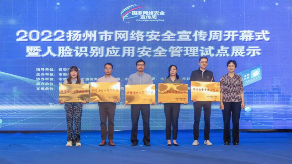 9月6日上午,2022揚(yáng)州市網(wǎng)絡(luò)安全宣傳周開幕式暨人臉識(shí)別應(yīng)用安全管理試點(diǎn)展示會(huì)在揚(yáng)州市迎賓館順利召開。開幕式上,城控集團(tuán)公用事業(yè)服務(wù)北區(qū)營(yíng)業(yè)廳(市民卡鴻福營(yíng)業(yè)廳)獲得“網(wǎng)絡(luò)安全示范點(diǎn)”授牌。