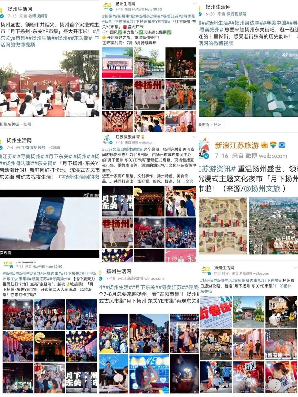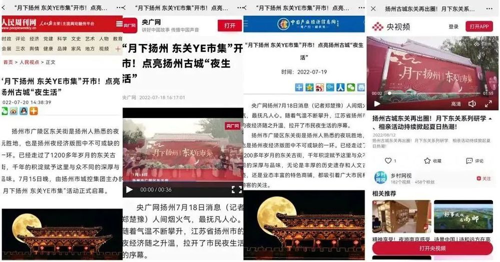 熱鬧集市異彩紛呈,吸引游客紛至沓來,點亮揚州古城夜經(jīng)濟,這也引發(fā)了多家媒體的關(guān)注與報道,包括多家國家級媒體、省市級媒體以及揚州本地自媒體。