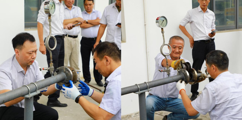 此次競(jìng)賽共有9組選手參加,大家統(tǒng)一使用指定工具、配備用品完成管道安裝,在安裝后打水壓到0.6MPa并保壓30秒。隨著裁判組一聲令下,參賽選手拿出平時(shí)的“看家本領(lǐng)”,爭(zhēng)分奪秒,各顯身手。無(wú)論是墊片、螺栓的快速安裝技巧,還是管道安裝、水壓試驗(yàn)的分工安排和時(shí)機(jī)掌握,各個(gè)環(huán)節(jié)一氣呵成,充分展示了供熱人精湛的操作技能和良好的精神風(fēng)貌。經(jīng)過(guò)激烈的比拼,最終角逐出了相應(yīng)名次。