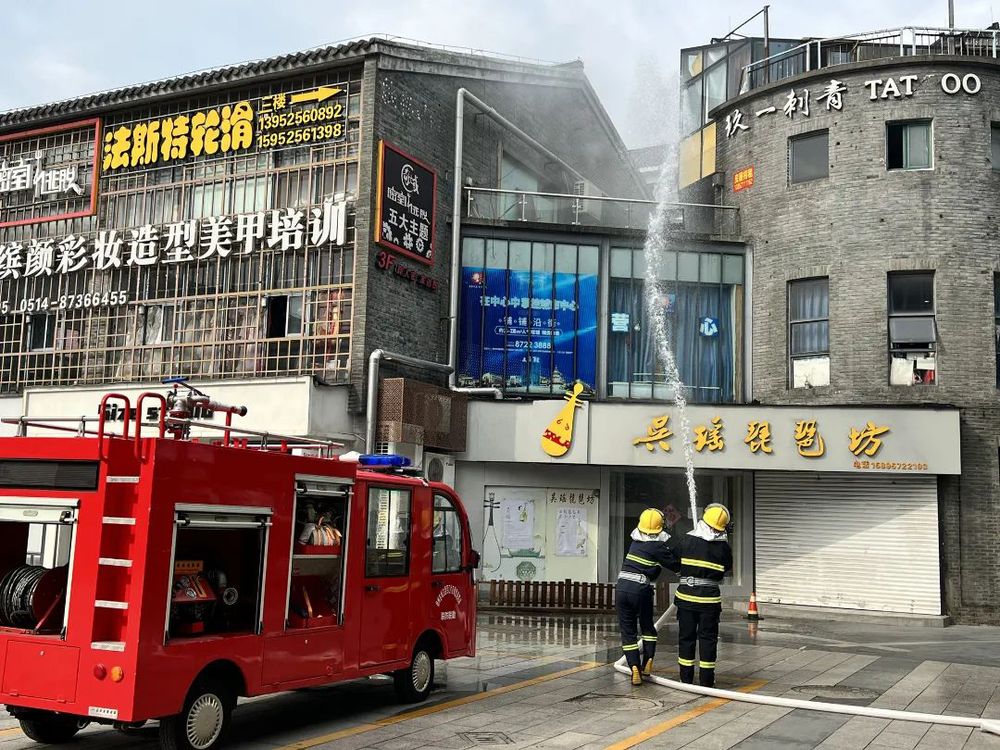 疏散小組成員第一時間指揮受困商戶使用毛巾捂住口鼻、低頭彎腰,快速有序地疏散至安全地帶。微型消防站隊員完成消防裝備的穿戴,3分鐘內(nèi)啟動微型消防車抵達(dá)現(xiàn)場離火點最近的消防栓,撲滅了“大火”。參演人員還根據(jù)現(xiàn)場講解,逐一使用滅火器對現(xiàn)場設(shè)置的火情進(jìn)行了撲滅演練。