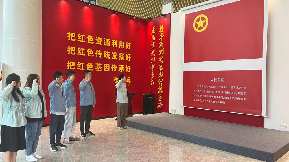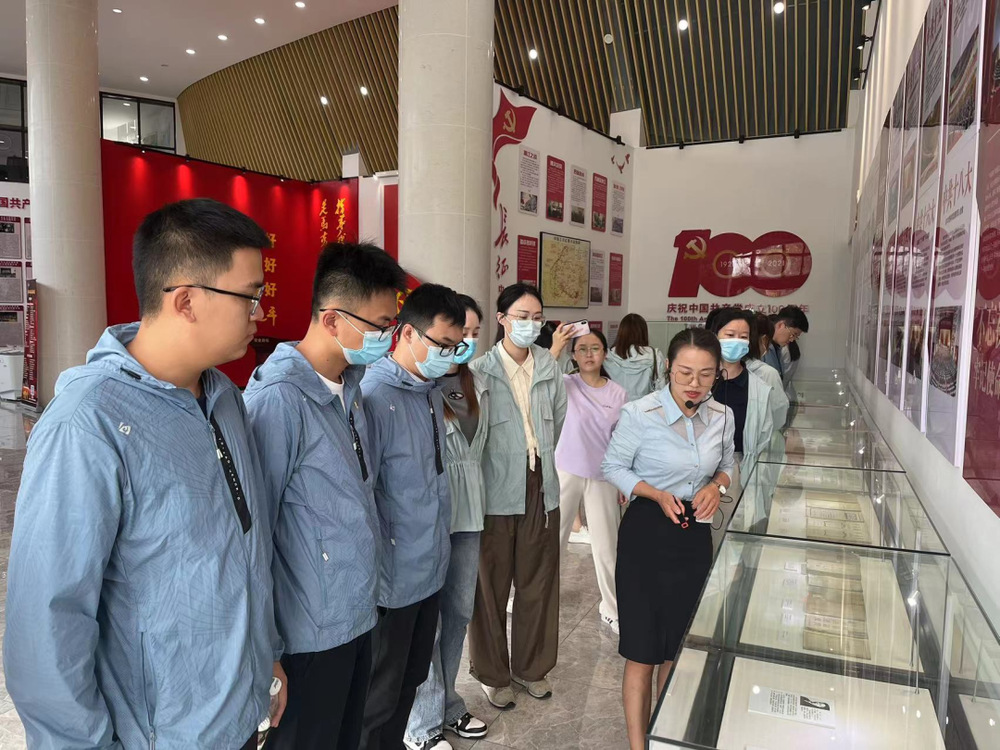 一進入黨史文化公園,大家都被這里的“紅色文化”氛圍吸引了,在公園內(nèi)的兩座先烈銅塑,展現(xiàn)了革命烈士為新中國成立拋頭顱、灑熱血的戰(zhàn)斗畫面。全體青年職工懷著崇敬的心情,參觀了黨史文化公園初心館,追尋紅色足跡,瞻仰革命先烈的事跡圖片和歷史實物,通過講解員的講解和游覽紅色VR數(shù)字展館,回顧黨史、長征史、共青團史,瞻仰了革命先烈為共產(chǎn)主義事業(yè)奮斗終身的堅定決心,并在此紅色革命圣地重溫了入團誓詞,傳承偉大革命精神。