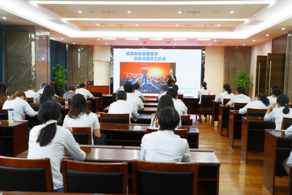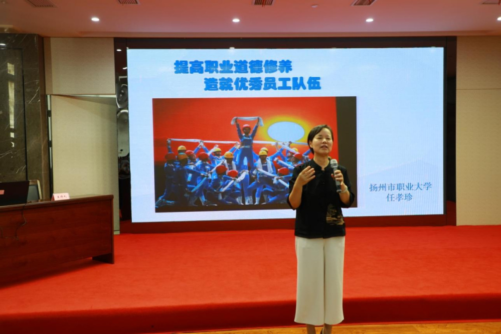 為進一步提升職業(yè)道德修養(yǎng),強化責任擔當,貫徹落實意識形態(tài)工作,促進干部員工以飽滿的工作熱情和嶄新的精神風貌投入到工作中,形成愛崗敬業(yè)、誠實守信、團結協(xié)作的良好局面,9月26日,供熱公司特邀揚州市總工會“義工教授”、揚州職業(yè)大學旅游學院副院長、副教授任孝珍授課。