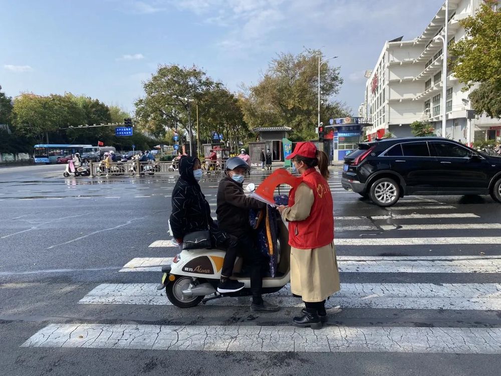 在路口,志愿者身穿紅色馬甲,手拿文明勸導(dǎo)小紅旗,以文明的語言和親切的態(tài)度,對越過停止線停車、不佩戴安全頭盔騎行、逆向行駛等不文明交通行為進(jìn)行及時(shí)耐心的勸導(dǎo),告知其危險(xiǎn)性,引導(dǎo)行人安全通過人行橫道。同時(shí),如有腿腳不方便的老人、提重物的行人,也會熱心上前提供幫助,并提醒他們注意交通信號燈,安全過馬路,遇有人問路,志愿者也會耐心指引。
