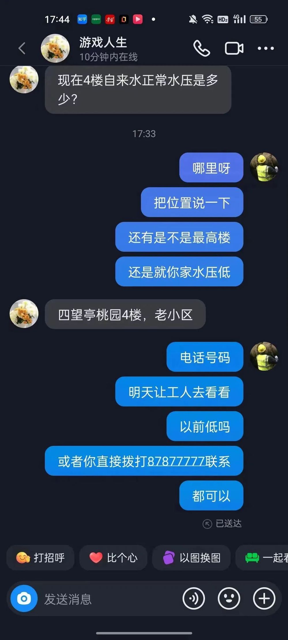 請把電話號碼留一下,我們派人工人去現(xiàn)場看一下,以前水壓低嗎?或者你直撥87877777聯(lián)系供水客服,都可以。