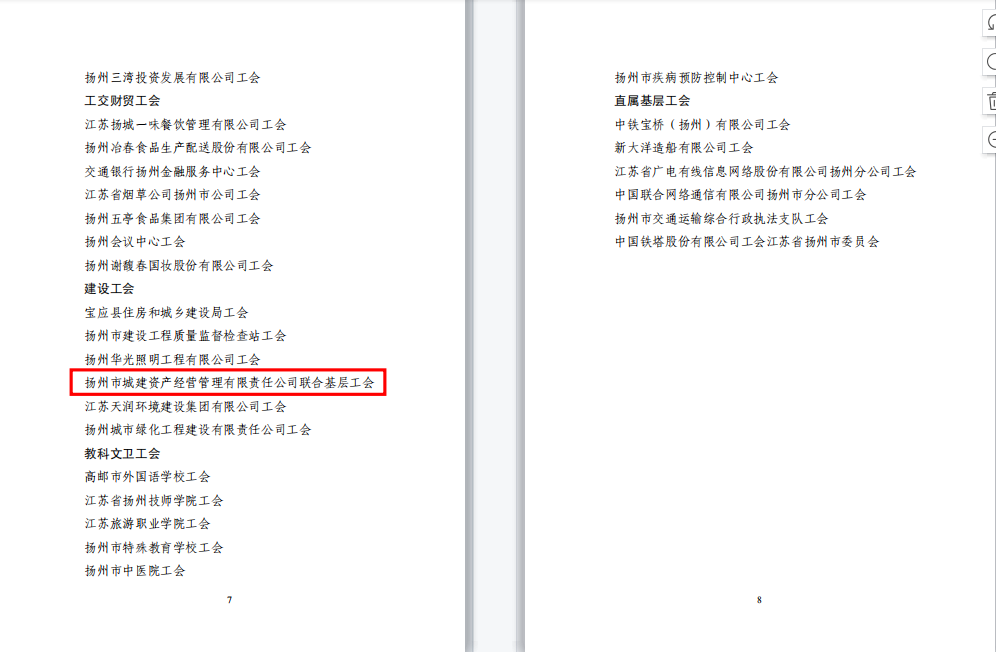 2022年,城建資產(chǎn)聯(lián)合基層工會(huì)緊緊圍繞公司年度中心任務(wù),團(tuán)結(jié)帶領(lǐng)廣大干部職工,積極致力于企業(yè)文化建設(shè)發(fā)展,以為職工謀福利為己任,扎實(shí)履行工會(huì)職能,關(guān)心關(guān)愛職工身心健康,秉承“干實(shí)事、辦好事、解難事”的宗旨,從“心”出發(fā),真正做職工貼心的“娘家人”。一份耕耘一份收獲,在全體職工齊心協(xié)力的努力下,城建資產(chǎn)聯(lián)合基層工會(huì)被揚(yáng)州市總工會(huì)授予“揚(yáng)州市模范職工之家”榮譽(yù)稱號(hào)。