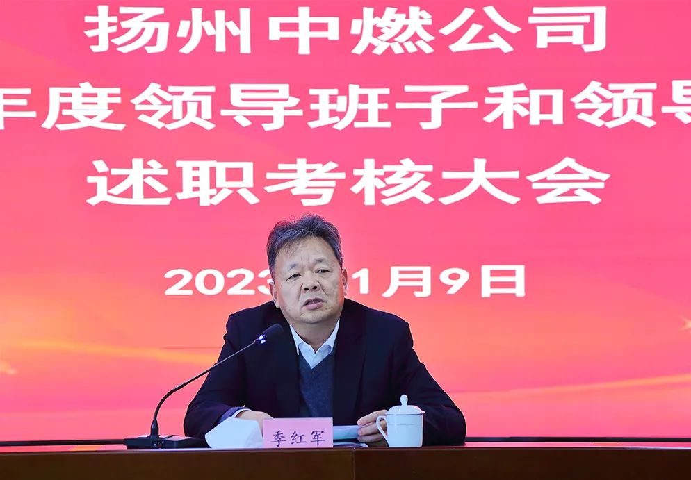 2023年1月9日下午,揚(yáng)州中燃公司召開2022年度領(lǐng)導(dǎo)班子和領(lǐng)導(dǎo)人員年度考核會(huì)。集團(tuán)黨委委員、副總經(jīng)理季紅軍出席會(huì)議并講話,集團(tuán)考核組成員,揚(yáng)州中燃公司領(lǐng)導(dǎo)班子、中層干部和員工代表參加會(huì)議。