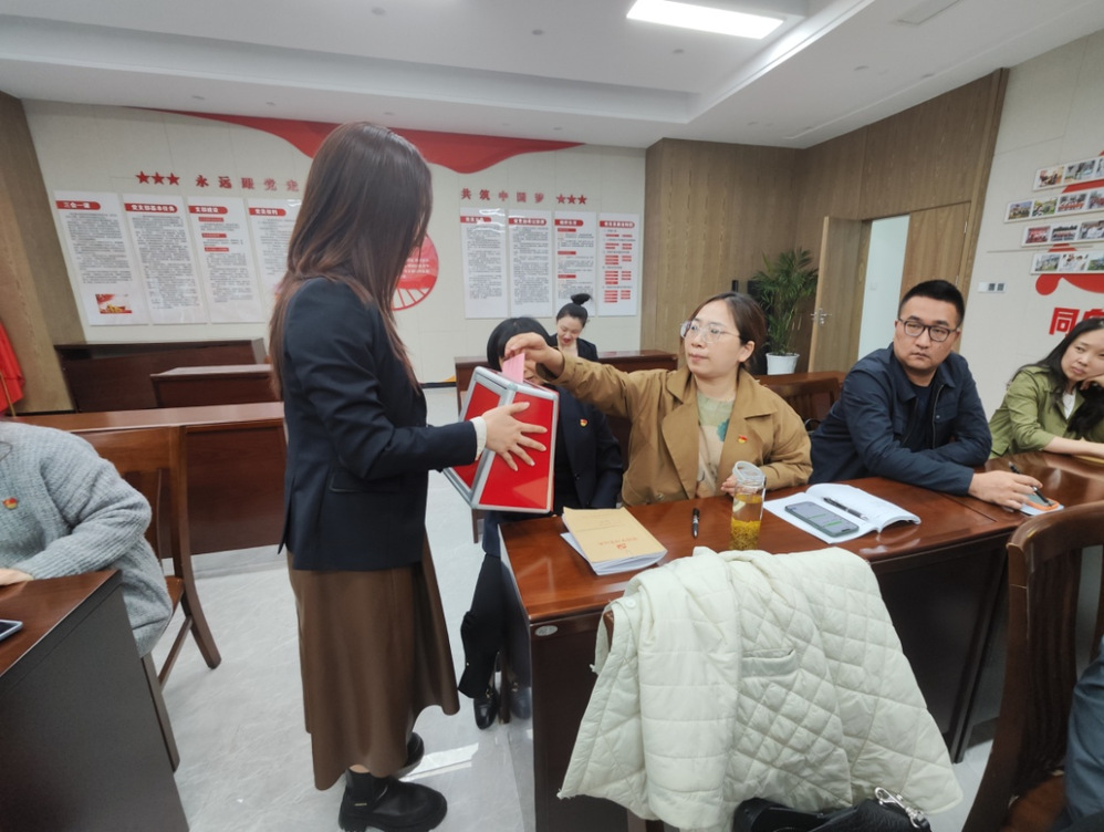 隨后,大會審議通過了換屆選舉辦法、新一屆聯(lián)合黨支部委員會候選人名單。與會黨員采取無記名投票的方式進行差額選舉,從6名候選人中選舉產生5名新一屆聯(lián)合黨支部委員。