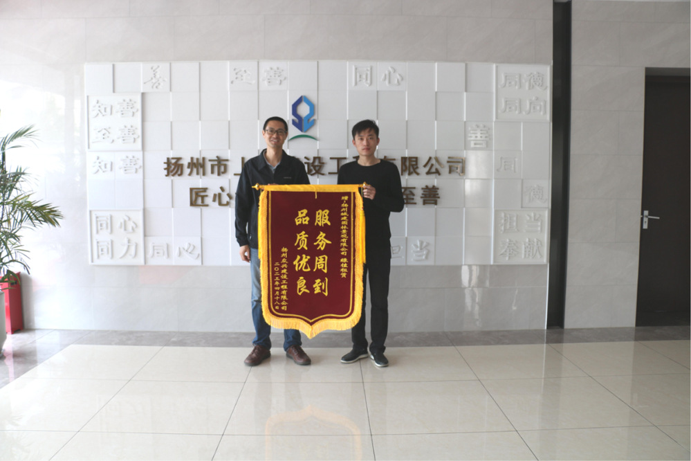 2023年4月18日上午,揚州市眾興建設(shè)工程有限公司主任攜著一面“服務(wù)周到 品質(zhì)優(yōu)良”的錦旗送給了揚州城建園林景觀有限公司,衷心地感謝園林公司在綠植租賃服務(wù)中的熱情付出、辛勤勞動,傾聽客戶需求,關(guān)注養(yǎng)護細節(jié),帶給了他們優(yōu)良的服務(wù)體驗。