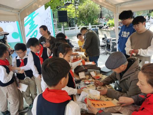 活動現(xiàn)場氣氛熱烈,形式多樣,既有趣味十足的拼貼詩大賽、舊書互換等;也有傳遞愛心的愛心書簽、公益捐贈等;還有打破常規(guī)書享界面,由街道圖書館和網(wǎng)紅圖書館聯(lián)合呈現(xiàn)的流動書攤快閃,在現(xiàn)場展示展銷各大精品書目,為市民群眾帶來一場閱讀的視覺享受。