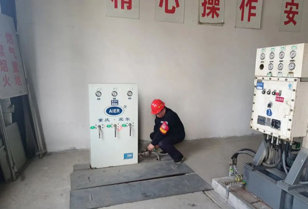 演練圍繞“消除安全隱患,筑牢安全防線”主題,主要模擬壓縮機間內(nèi)干燥塔閥門突發(fā)大量燃?xì)庑孤膊槿藛T發(fā)現(xiàn)后立即向當(dāng)班班長匯報,班長立即啟動應(yīng)急處置預(yù)案,組織人員關(guān)停所有站內(nèi)設(shè)備,切斷氣源,疏散現(xiàn)場人員;同時在加氣站出入口設(shè)置警戒,禁止無關(guān)人員、車輛進(jìn)入。維修人員到達(dá)現(xiàn)場后,及時實施搶修作業(yè),經(jīng)專業(yè)儀器檢測確認(rèn)燃?xì)庑孤┕收吓懦?,解除警戒,恢?fù)正常運營。