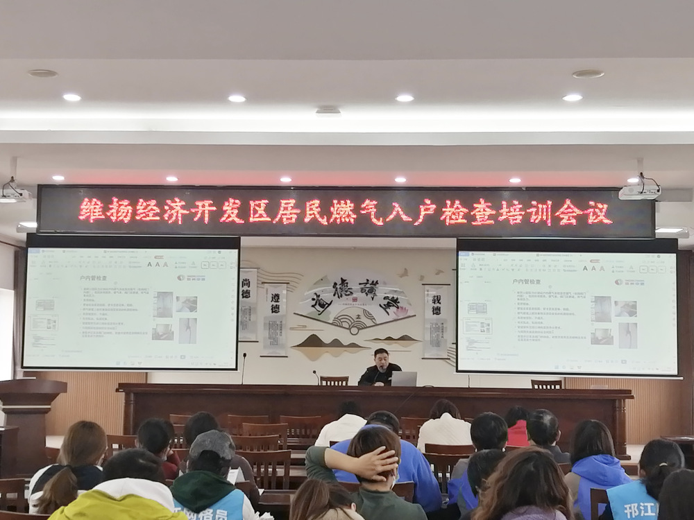 在朱塘社區(qū)會議室,來自維揚(yáng)開發(fā)區(qū)所轄的社區(qū)網(wǎng)格員和樓棟長共50多人參加活動。藍(lán)焰融惠志愿者通過講解PPT、播放宣傳片的形式,從“如何進(jìn)行燃?xì)獍踩詸z、用氣安全隱患分析、燃?xì)庑孤┡c事故發(fā)生的關(guān)聯(lián)度、用氣存在的不安全行為、燃?xì)庑孤?yīng)急處置措施”等方面進(jìn)行了深入淺出的宣講。志愿者現(xiàn)場就大家提出的有關(guān)問題進(jìn)行了答疑解惑,同時(shí)就附近商戶普遍關(guān)注的“瓶改管”工作做出了相應(yīng)的宣傳和積極的回應(yīng)。