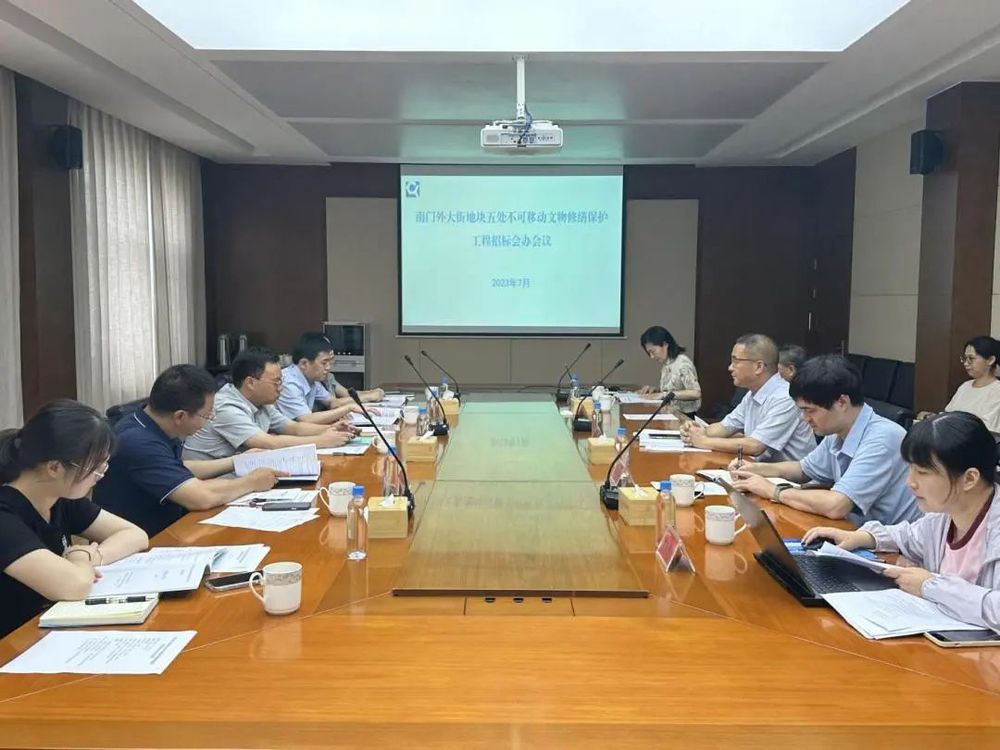 為加快推進南門外大街保留建筑項目建設(shè),7月14日上午,城控集團組織召開南門外大街地塊五處不可移動文物修繕保護工程施工、監(jiān)理招標會辦會。集團黨委委員戴興春、集團副總經(jīng)理吳健、集團有關(guān)部室負責人、名城公司、編審標單位、招標代理公司等相關(guān)人員參加會議。