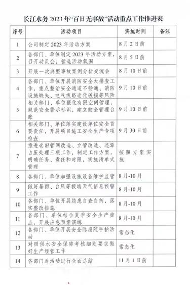 安全發(fā)展大如天,安全責(zé)任重如山。為進(jìn)一步織密織牢“安全防線”,根據(jù)城控集團(tuán)統(tǒng)一部署,長(zhǎng)江水務(wù)公司從嚴(yán)從實(shí)抓好夏季安全生產(chǎn)工作,制定下發(fā)“夏季安全生產(chǎn)百日無事故活動(dòng)”方案,多措并舉筑牢安全供水防線,扎實(shí)推進(jìn)活動(dòng)走深走實(shí)。