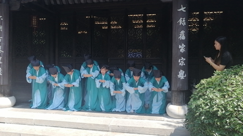 蒙學(xué)禮儀環(huán)節(jié)再現(xiàn)了阮元對于教育的重視。學(xué)員們端坐坐案前,聆聽著古時(shí)教學(xué)的內(nèi)容,感受了傳統(tǒng)蒙學(xué)的學(xué)習(xí)方式。通過此次親身體驗(yàn),大家更加深刻明白了阮元崇尚儒學(xué)、注重教育的人生態(tài)度。