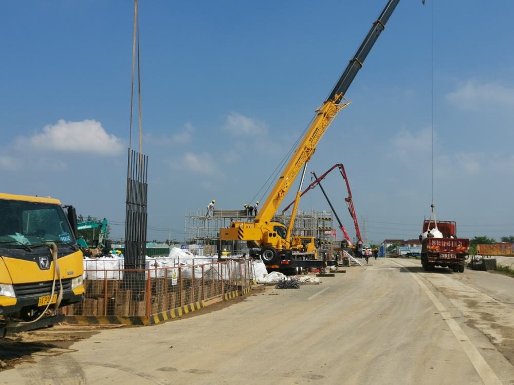 運(yùn)河路北延工程起點(diǎn)位于江運(yùn)互通,依次上跨寧啟鐵路,下穿北沿江高鐵,終點(diǎn)位于槐泗河以南約60米處,道路總長(zhǎng)約1.28公里。工程于2023年6月開工建設(shè),計(jì)劃于2024年12月竣工通車。目前,已完成鋼筋加工廠搭設(shè)、交通導(dǎo)改等工作,正在進(jìn)行樁基、承臺(tái)、墩柱及支架搭設(shè)等施工。