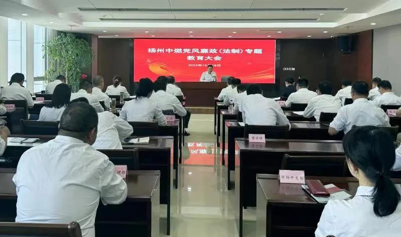 2023年10月18日下午,揚州中燃公司召開黨風(fēng)廉政暨法制教育專題會議。公司領(lǐng)導(dǎo)班子全體成員、中層干部、各支部委員、重點崗位人員參加會議。