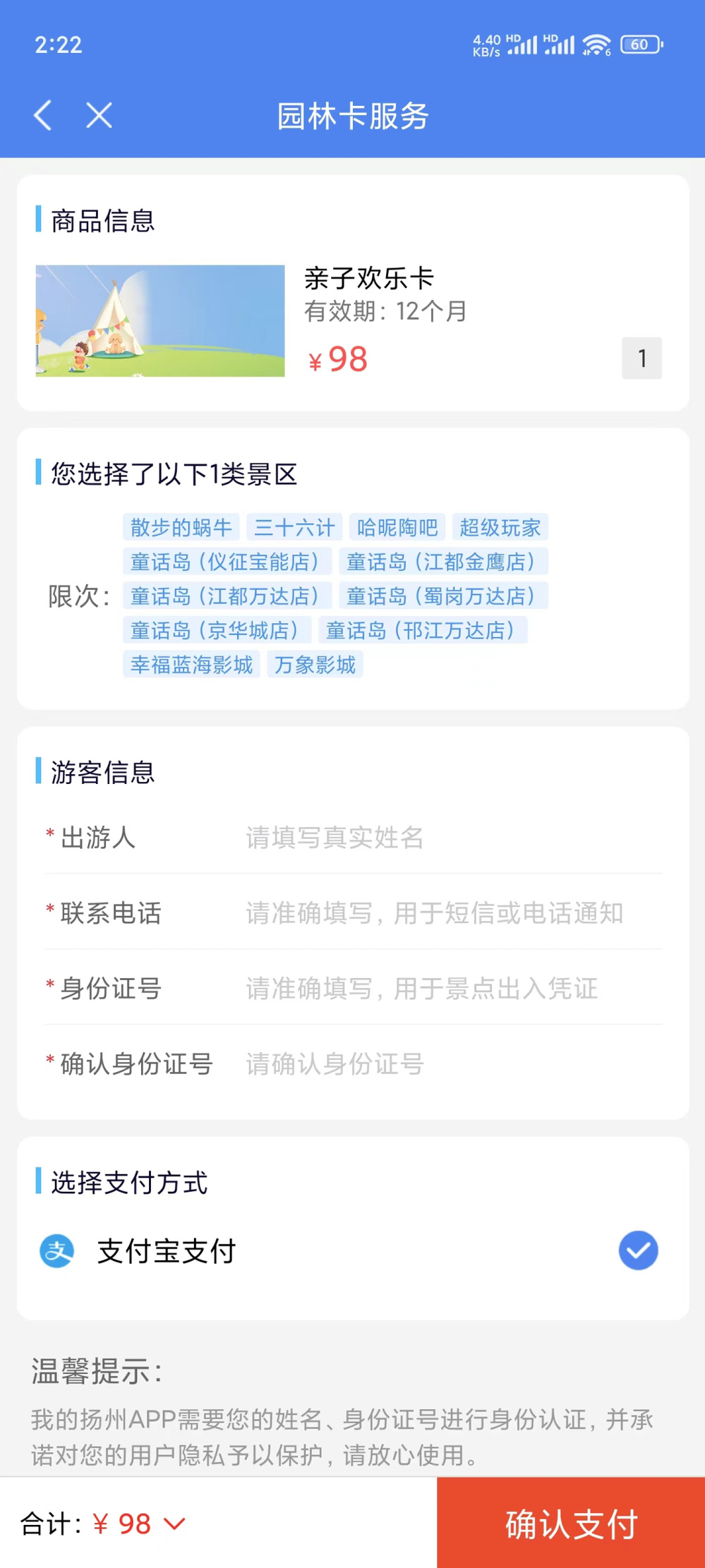 親子歡樂(lè)卡的售賣價(jià)格為98元/張,每張親子歡樂(lè)卡包含4次權(quán)益。