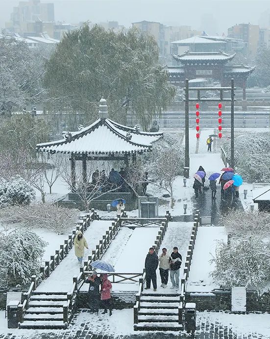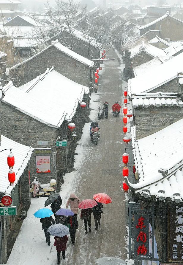 大雪紛紛揚揚覆蓋了揚州東關(guān)街。