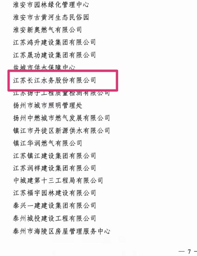 江蘇長江水務股份有限公司獲