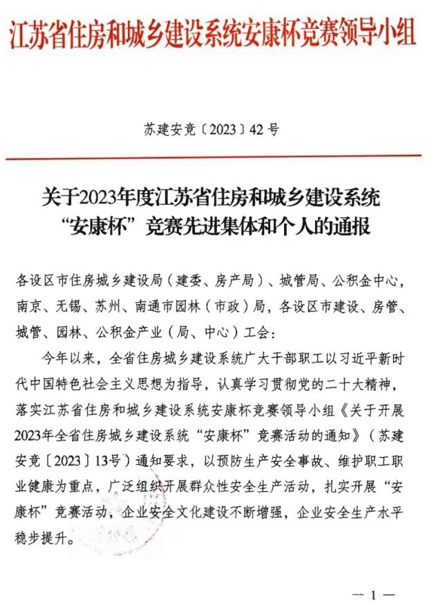 省住建系統(tǒng)“安康杯”競賽優(yōu)勝單位稱號