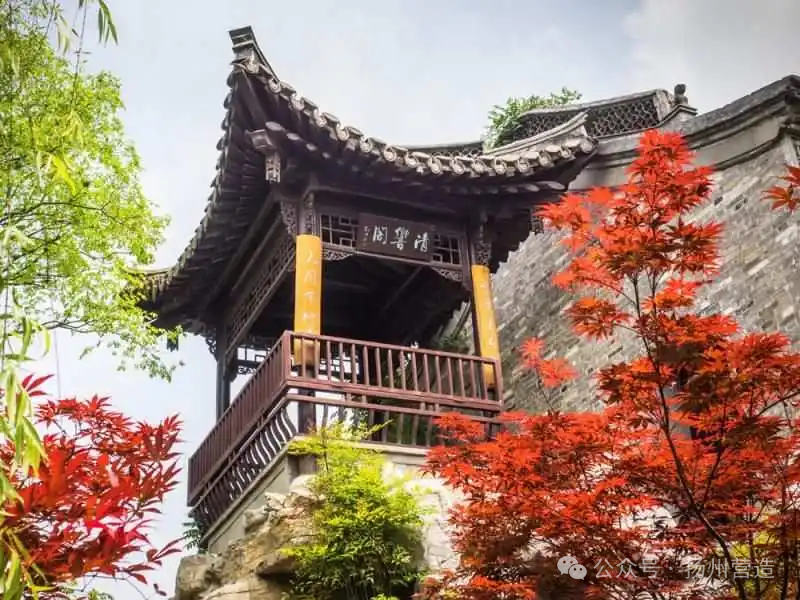 看山樓,顧名思義,站在樓頭,可以看到遠(yuǎn)處的山岡。上得樓頭,登高遠(yuǎn)眺,北郊蜀岡、江南諸峰,隱約可見(jiàn)。
