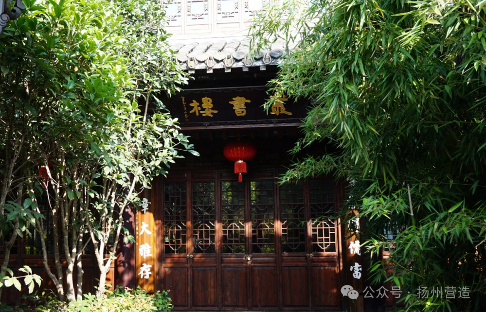 通過(guò)曲廊,走近叢書(shū)樓,樓前集句楹聯(lián)“學(xué)業(yè)醇儒富,文章大雅存”分列兩旁。樓宇高暢,上下兩層,朝南七間,硬山頂,雕花槅扇門窗,古色古香。清代學(xué)者袁枚說(shuō):“山館玲瓏水石清,邗江此處最知名。攢陳圖史常千架,供養(yǎng)文人過(guò)一生?!?/span>
