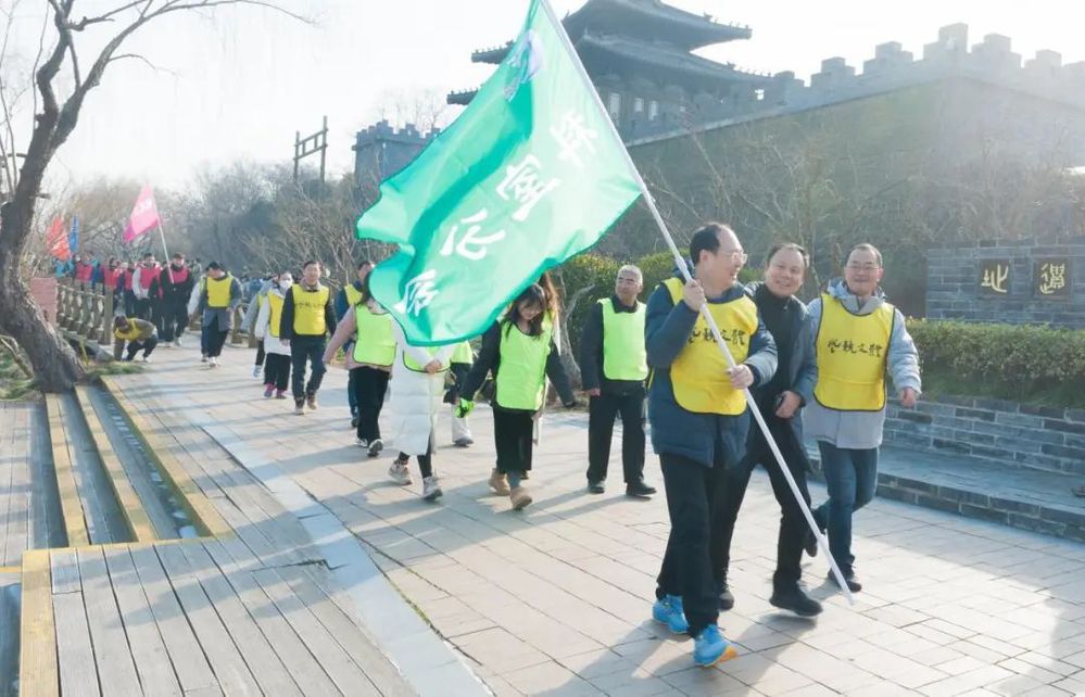 在舉行開幕式后,隊(duì)伍開始出發(fā)。健步走線路為:北門(起點(diǎn))→西門→南門→東門→北門(終點(diǎn)),全長約3.2公里。