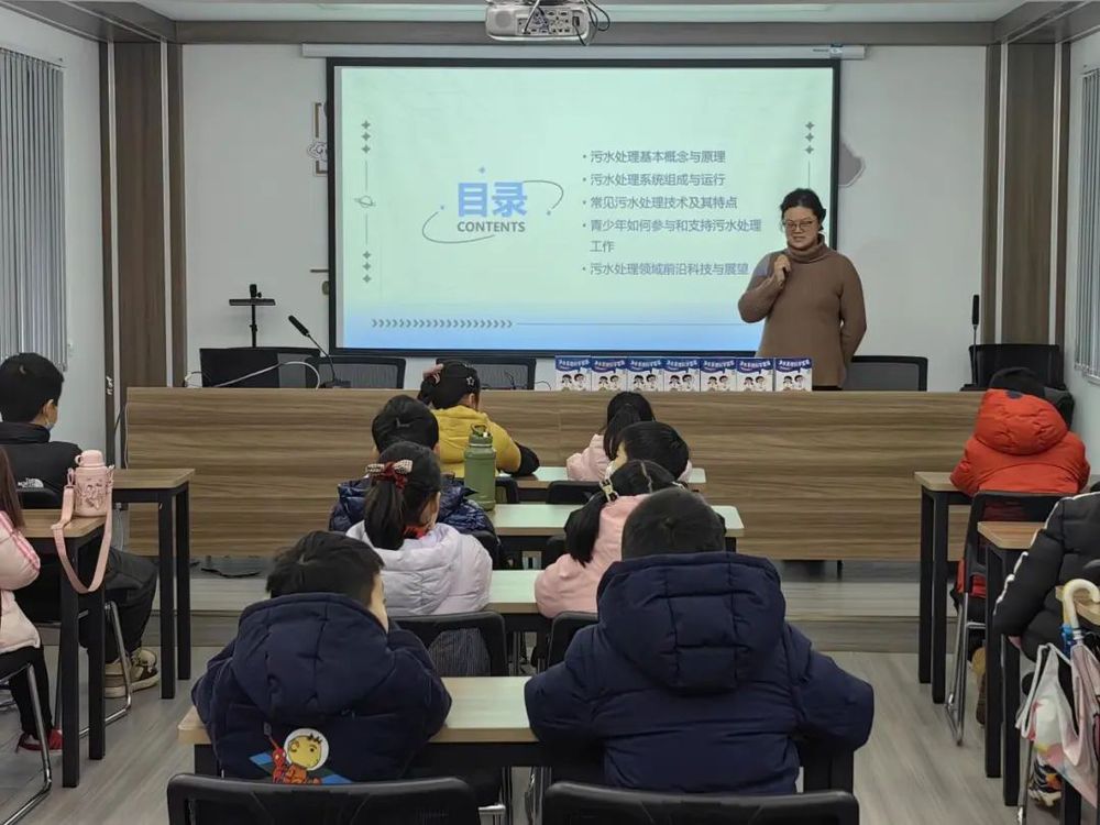 在多功能廳,環(huán)保講師以污水處理及保護(hù)為主題,通過一幅幅生動(dòng)的圖片和通俗易懂的語言,為40余名小朋友上了一堂以污水處理與再生水利用為主題的科普教育課,并向小朋友們講述了節(jié)水用水、水環(huán)境保護(hù)的重要意義。在交流互動(dòng)環(huán)節(jié),小朋友們分享了各自環(huán)保小故事和節(jié)約用水小妙招,環(huán)保講師也一一回答了小朋友們提出的問題。