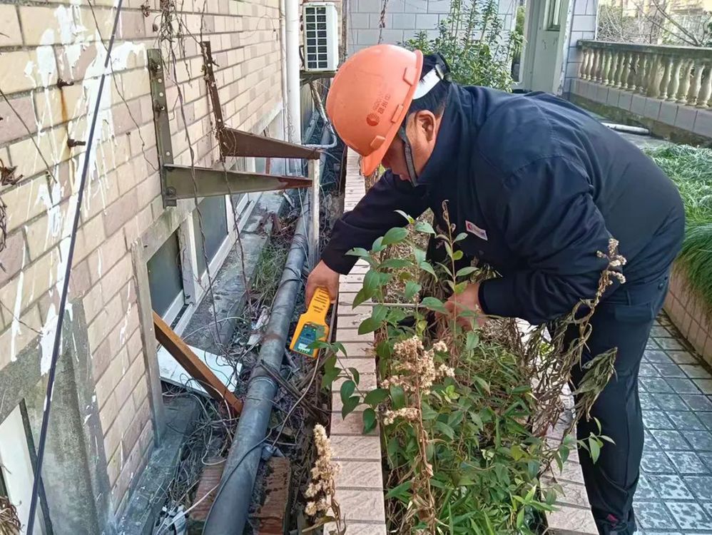 在文昌北苑,檢查人員發(fā)現(xiàn)有一處穿墻燃?xì)夤苡懈g,當(dāng)儀器靠近時(shí)隨即發(fā)出聲光漏氣報(bào)警。有隱患必排除,檢查人員立刻按照程序報(bào)告,生產(chǎn)運(yùn)營部調(diào)集搶維修人員帶著配件趕赴現(xiàn)場(chǎng)進(jìn)行搶修,更換快速節(jié)進(jìn)行連接,第一時(shí)間排除隱患。在凱運(yùn)天地二期和綠楊新苑檢查時(shí),發(fā)現(xiàn)平臺(tái)管也有腐蝕(不漏氣)和管道支架脫落現(xiàn)象,在詳細(xì)記錄后,統(tǒng)一安排了更換和維修。