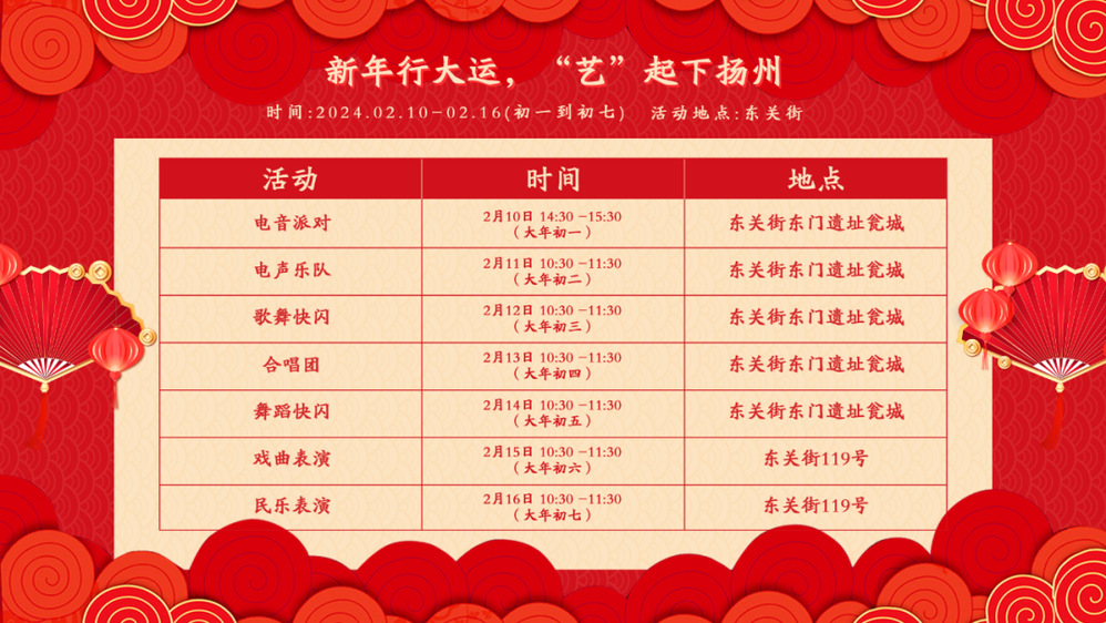 大年初一,揚(yáng)州東關(guān)街東門一片歡騰,《“新年行大運(yùn),藝起下?lián)P州”電音派對》活動于下午2:30在這里盛大開幕,為市民和游客帶來了別樣的新年體驗。