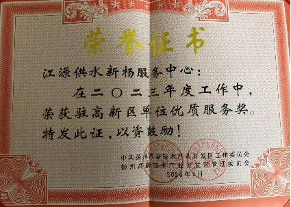 新年新榮譽(yù),邁上新征程,獲得榮譽(yù)既是鼓舞,更是鞭策。接下來,長江水務(wù)江源公司將繼續(xù)牢固樹立以“人民為中心”的服務(wù)宗旨,全力打造群眾辦事更省心的服務(wù)環(huán)境,為當(dāng)?shù)赜脩艉推髽I(yè)創(chuàng)造更加優(yōu)質(zhì)、便捷的營商環(huán)境。