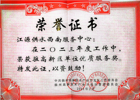 過去一年,長江水務(wù)江源公司在優(yōu)化營商環(huán)境、提升對外服務(wù)質(zhì)量方面取得了顯著工作成效,杭集、方巷、槐泗、楊廟、汊河、甘泉等6家網(wǎng)點(diǎn)于近日分別榮獲優(yōu)質(zhì)服務(wù)單位榮譽(yù)稱號。
