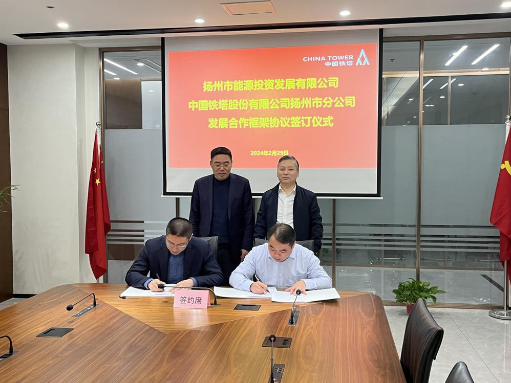 2月29日下午,揚州能源集團與中國鐵塔揚州分公司簽訂發(fā)展合作框架協(xié)議,揚州城控集團副總經理、揚州能源集團董事長孔德存與中國鐵塔揚州分公司黨委書記、總經理周太群出席簽約儀式。