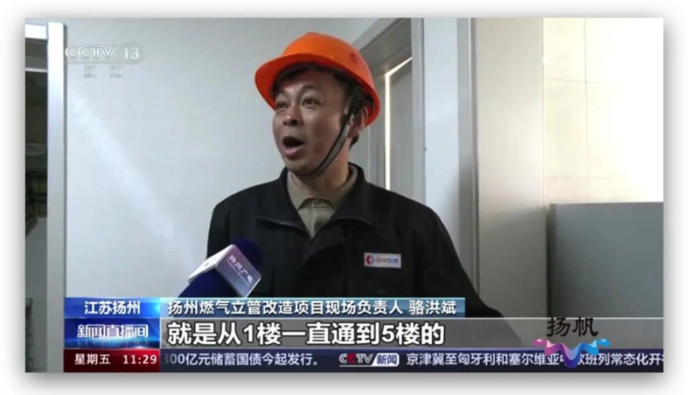 國務(wù)院關(guān)于印發(fā)《推動(dòng)大規(guī)模設(shè)備更新和消費(fèi)品以舊換新行動(dòng)方案》正在各地落實(shí)。從4月底開始,揚(yáng)州持續(xù)開展了老舊小區(qū)燃?xì)獍踩[患排查,啟動(dòng)戶內(nèi)老化燃?xì)饬⒐芨脑旄鹿こ獭?月10日中午,央視《新聞直播間》報(bào)道了揚(yáng)州這一改造更新工程。