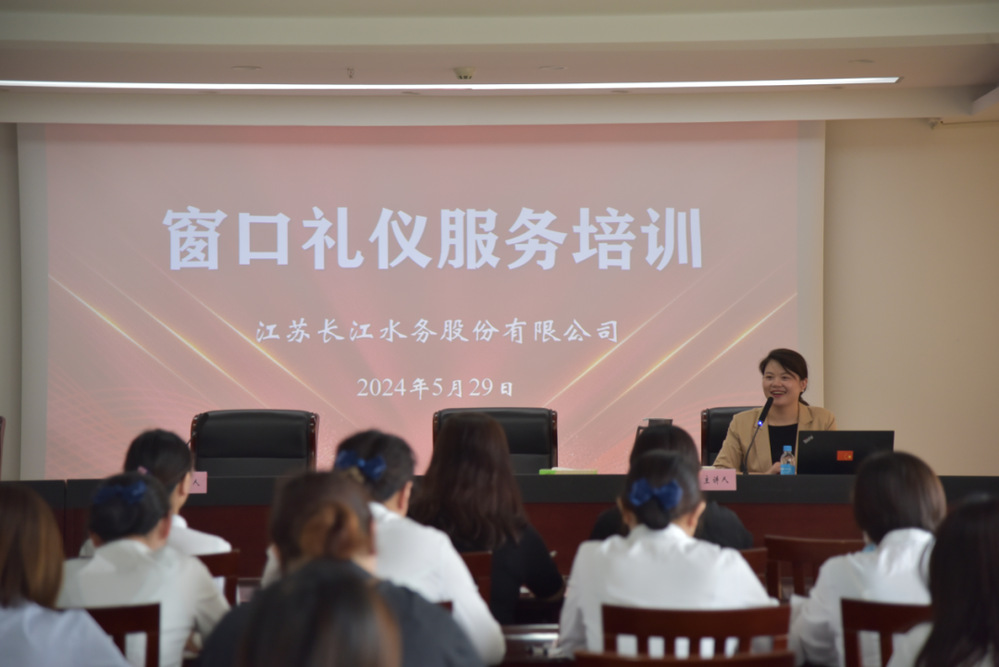 為進(jìn)一步優(yōu)化營(yíng)商環(huán)境,提高窗口服務(wù)人員服務(wù)質(zhì)量和業(yè)務(wù)水平,5月29日下午,長(zhǎng)江水務(wù)公司特邀揚(yáng)州市總工會(huì)“義工教授”、揚(yáng)州市朗誦協(xié)會(huì)辦公室主任夏良萍老師開(kāi)展窗口禮儀服務(wù)專題培訓(xùn),長(zhǎng)江水務(wù)窗口服務(wù)部門共50余人參加培訓(xùn)。