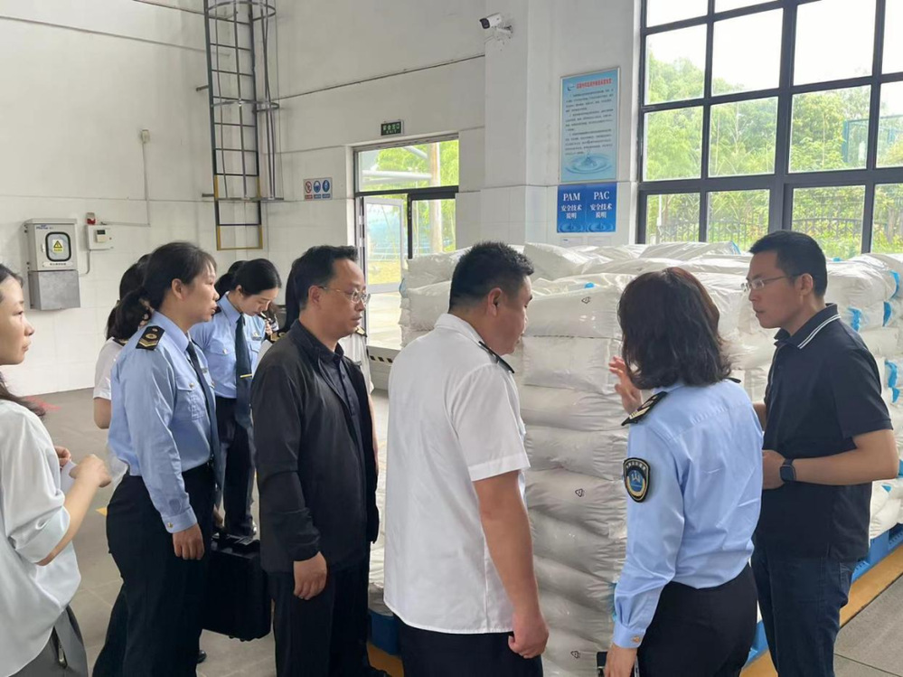 在檢查過(guò)程中,檢查組重點(diǎn)查看了凈水藥劑的采購(gòu)、使用及儲(chǔ)存情況,對(duì)長(zhǎng)江水務(wù)始終注重選擇質(zhì)量可靠、符合衛(wèi)生規(guī)范要求的凈水材料表示滿意。同時(shí),檢查組專家也對(duì)飲用水水質(zhì)的應(yīng)急處置、如何有效監(jiān)測(cè)等方面提出了寶貴建議,以確保水質(zhì)從源頭到終端的每一環(huán)節(jié)都得到有效控制。
