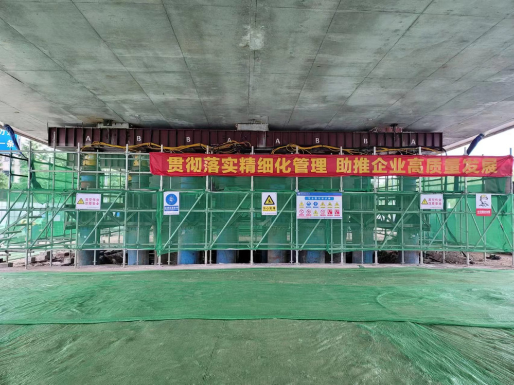 6月19日下午三點(diǎn),潤(rùn)揚(yáng)南路快速化改造工程(開(kāi)發(fā)路-華揚(yáng)西路段)圓滿(mǎn)完成橋梁頂升。此次橋梁頂升施工歷時(shí)23天,頂升總面積5120平方,最大行程3.377米,總重量約14000噸,為目前揚(yáng)州市單體最大的橋梁頂升工程。