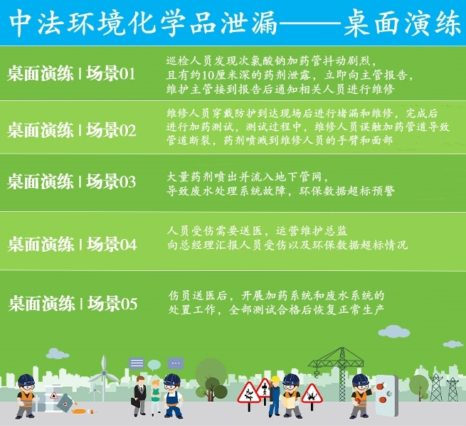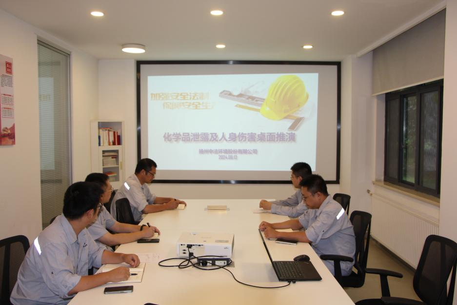 為進一步提升公司職工在應(yīng)對突發(fā)環(huán)境事件時的應(yīng)急響應(yīng)能力,最大限度減少損失和影響,8月13日下午揚州中法環(huán)境組織開展了化學(xué)品泄漏桌面推演活動,公司運營維護部、技術(shù)部、安環(huán)部、綜合部參加活動。