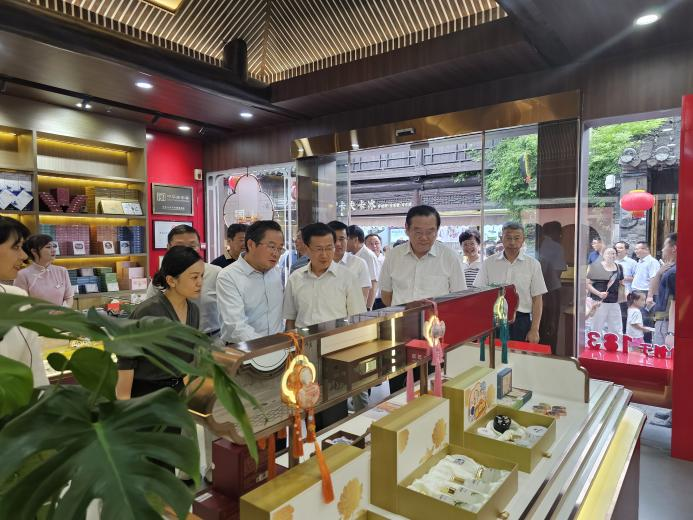 王立平一行沿東關(guān)古街,實(shí)地察看周邊風(fēng)貌,了解街區(qū)歷史沿革和文旅資源保護(hù)利用等情況,深入冬榮園、謝馥春、街南書(shū)屋、揚(yáng)州漆器廠等店鋪商家,聽(tīng)取情況介紹,詳細(xì)了解街區(qū)招商、老字號(hào)傳承、文商旅產(chǎn)業(yè)融合工作所取得的成效,并對(duì)揚(yáng)州城控集團(tuán)堅(jiān)持保護(hù)與利用、改造與復(fù)興、傳承與發(fā)展相結(jié)合理念,扎實(shí)推進(jìn)古城項(xiàng)目建設(shè)和經(jīng)營(yíng)管理方面取得的成績(jī)予以了充分肯定。