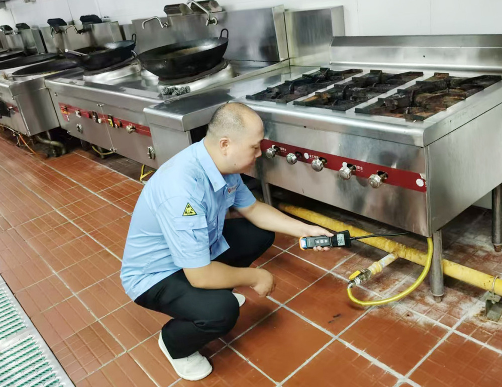 安檢人員秉持著嚴(yán)謹(jǐn)認(rèn)真的態(tài)度,對(duì)學(xué)校食堂的燃?xì)夤艿肋M(jìn)行了全方位的檢測。重點(diǎn)排查燃?xì)夤艿朗欠裼懈g、破損、裂縫等跡象,不放過任何一個(gè)可能存在安全隱患的細(xì)節(jié)。在檢查過程中,安檢人員不僅專注于硬件設(shè)施的檢查,還向?qū)W校工作人員詳細(xì)講解燃?xì)獍踩褂弥R(shí),強(qiáng)調(diào)燃?xì)庠O(shè)備日常維護(hù)的注意事項(xiàng),叮囑要定期檢查燃?xì)夤艿篮驮O(shè)備的密封性、保持通風(fēng),避免在燃?xì)庠O(shè)施周圍堆放易燃物品等。對(duì)食堂員工現(xiàn)場講解了遇到燃?xì)庑孤┑染o急情況時(shí),須迅速關(guān)閉燃?xì)忾y門、打開門窗通風(fēng)、切勿使用明火和電器設(shè)備、及時(shí)撤離現(xiàn)場并撥打緊急救援電話等避險(xiǎn)應(yīng)急措施。