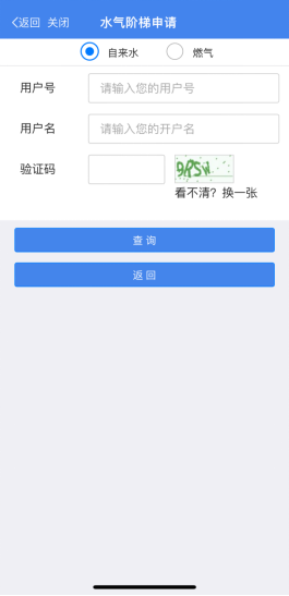 03選擇申請(qǐng)辦理業(yè)務(wù)進(jìn)入“水氣階梯申請(qǐng)”,根據(jù)自身需要辦理的業(yè)務(wù)點(diǎn)擊相應(yīng)的按鈕,若自來水和燃?xì)饩枭暾?qǐng),點(diǎn)擊“水氣聯(lián)合階梯價(jià)格申請(qǐng)”。