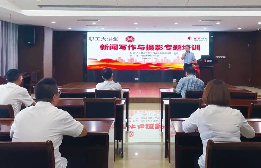 為進(jìn)一步提高干部職工的新聞寫作能力和攝影水平,加強(qiáng)宣傳隊(duì)伍建設(shè),9月13日下午,揚(yáng)州中燃公司工會舉辦2024年第三期“職工大講堂”,邀請公司黨群工作部部長蔡建作新聞寫作與攝影專題培訓(xùn)。公司分管負(fù)責(zé)人、干部職工代表近60人參加培訓(xùn)。
