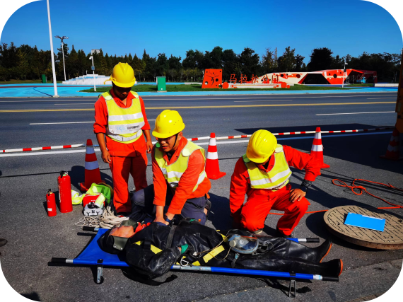 演練模擬污水管網(wǎng)下井清淤作業(yè)過(guò)程中井下人員發(fā)生意外,疑似吸入有毒有害氣體出現(xiàn)中毒昏迷狀況?!半U(xiǎn)情”發(fā)生后,指揮組立即啟動(dòng)有限空間應(yīng)急響應(yīng),各應(yīng)急救援小組立即按照有限空間應(yīng)急救援預(yù)案開展救援。救援人員利用被困人員自身攜帶的安全繩,通過(guò)救援三腳架將被困人員移出井外,轉(zhuǎn)移至安全區(qū)域,進(jìn)行心肺復(fù)蘇,確認(rèn)中毒人員恢復(fù)意識(shí)后,送往醫(yī)院進(jìn)一步治療。演練結(jié)束后,公司安全總監(jiān)對(duì)此次演練給予充分肯定,認(rèn)為演練過(guò)程各應(yīng)急小組密切配合,反應(yīng)迅速,達(dá)到預(yù)期演練效果。